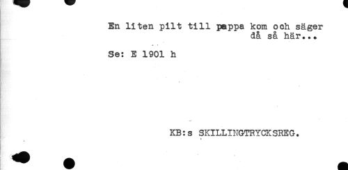 //// En liten pilt till pappa kom och säger //// då så här... //// * * //// Se: E 1901 h //// ( //// . //// - //// KB:s SKILLINGTRYCKSREG. ////