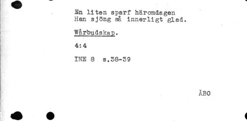 //// En liten sparf häromdagen //// Han sjöng sa innerligt glad. //// * //// Wårbudskap. //// 4:4 //// . //// INE 8 s.58-39 //// ni //// * //// ^JBO ////