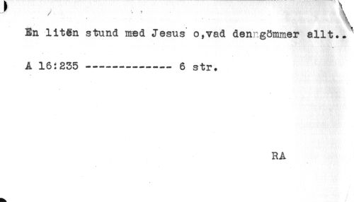//// ' ' \ //// En liten stund med Jesus o,vad denngömmer allt..^ //// A 16:235 ---- 6 str. //// RA //// * ////