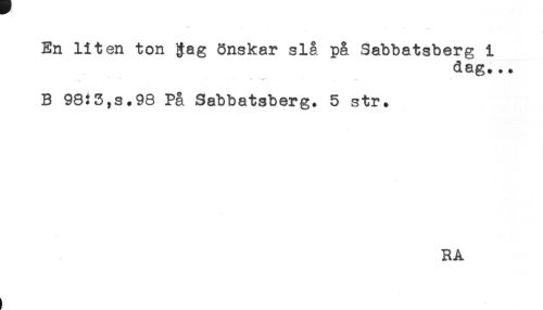 //// - //// -- //// En liten ton gag önskar slå på Sabbatsberg i //// dag... //// B 98i3,s.98 På Sabbatsberg. 5 str. //// RA ////