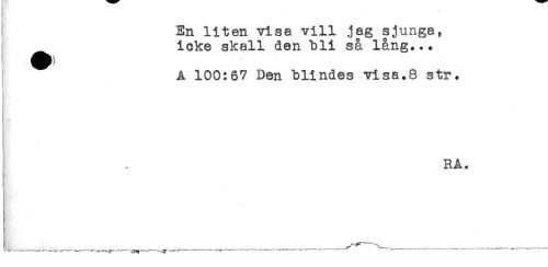 //// En liten visa vill jag sjunga, //// ^ icke skall den bli så lång... //// A 100:67 Den blindes visa.8 str. //// ! //// ) //// RA. //// j //// ,t //// } ____ _____ ////