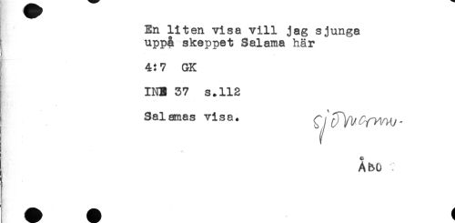 //// En liten visa vill jag sjunga //// uppå skeppet Salarna här //// 4:7 GK //// INB 37 s.112 //// t Salamas visa. //// Å &0 . ////