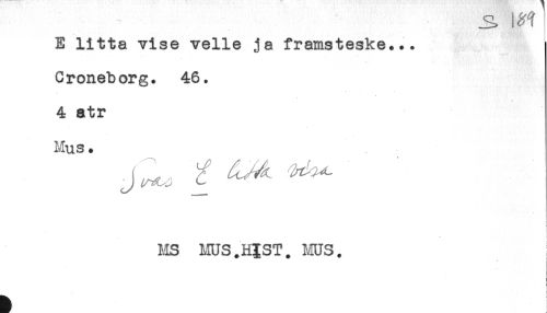 //// E litta vise velie ja framsteske... //// Croneborg. 46. //// 4 atr //// Mus. //// MS MUS.HlST. MUS. ////