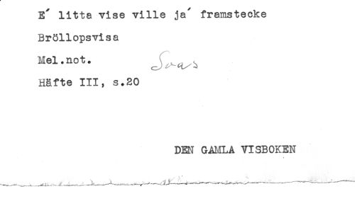 //// E litta vise ville ja framstecke //// Bröllopsvisa //// Mel.not. ^ //// Häfte III, s.20 //// DEN GAMLA VISBOKEN //// * ////