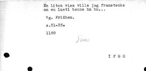 //// En liten visa ville jag framstecka //// om en lusti bonne hm hm... //// Vg. Fridhem. //// s.31-33* //// 1188 //// -\ //// J //// ^ I F G H ////