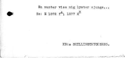 //// En munter visa mig lyster sjunga... //// * //// ^ Se: E 1872 f^; 1877 d^ //// t //// KB:s SKILLINGTRYCKSREG. ////
