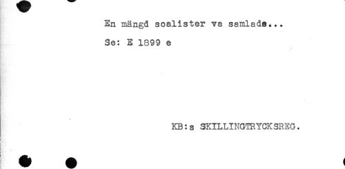 //// En mängd soalister va samlade... //// Se: E 1899 e //// t //// - //// < //// KB:s SKILLINGTRYCKSREG. //// i //// ! //// ! ////