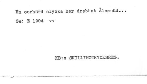 //// En oerhörd olycka har drabbat Ålesuhd... //// Se: E 1904 vv //// KB:s SKILLINGTRYCKSREG. ////