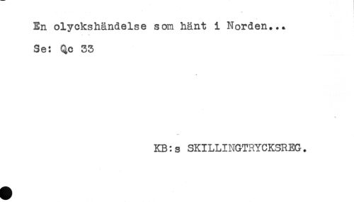 //// ** //// En olyckshändelse som hänt i Norden..* //// Se: Qc 35 //// KB: s SKILLINGTRYCKSREG. ////