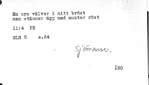 //// En oro välver i mitt bröst ] //// men stämmer dpp* med munter röst j //// * i //// 11:4 PE ] //// SLS 5 s.24 ] //// ÅBO ////
