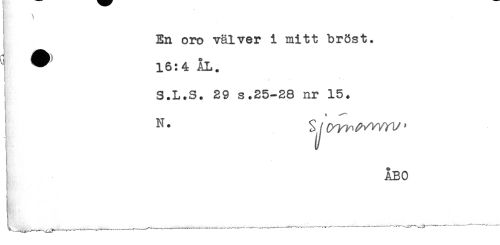 //// I En oro välver i mitt bröst. //// 1 ^ 16:4 ÅL. //// < * //// ^ < //// ' S.L.S. 29 s.25-28 nr 15. //// * - //// N* //// ÅBO ////