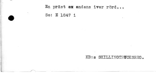 //// En präst an andans iver rörd... //// ^ Se: E 1847 i //// r-' //// KB:s SKILLINGTR¥CKSREG. //// ^ _ ____/ ^^_____ ____ ____ ////