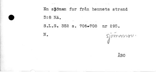 //// ; //// En sjöman for från hemmets strand //// ^ 3:8 NA. //// ' " " . . ' r ..... - * ^ //// S.L.S. 352 s. 706-708 nr 295. //// J //// ÅBO //// _____ _____......-____ . .... ......, ////