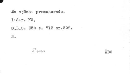 //// En sjöman promenerade. //// l:2+r. KO. //// i //// S.L.S. 352 s. 713 nr.298. //// N. //// I //// i //// A* //// <f ÄBO //// . //// ! //// ! //// f //// . [ //// < //// ) ! ////