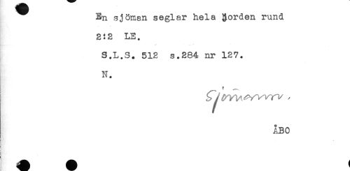 //// En sjöman seglar hela Rorden rund //// 2!2 LE. //// * ^ * - * //// S.L.S. 512 s.264 nr 127. //// N. //// ^ ' - //// ÅBO //// I //// ! //// A * ////