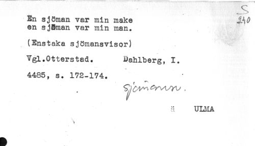 //// JS //// En sjöman var min make //// en sjSman var min man. //// (Enstaka sjömansvisor) //// Vgl.Otterstad. Dahlberg, 1. //// 4485, s. 172-174. //// å ULMA ////