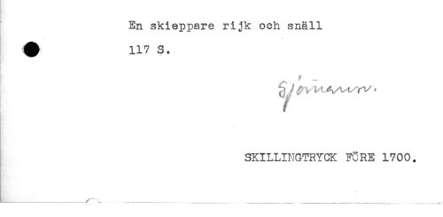 //// En skieppare rijk och snäll //// - //// ^ 117 S. //// i - //// SKILLINGTRYCK F^RE 1700. //// -. ,... .... .... ...___ ___. ////