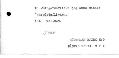 //// [ En skärgårdsflicka jag ännu minnes //// ^ ^kär gårds fli ekan. //// 164 mel.not. //// J', //// SÖDEK^IAN BJÅRE H:D //// BÅSTAD KOPIA SVA ////
