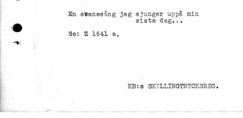 //// . * //// En sTEanesang jag sjunger uppa min //// sista dag... //// Se: 2 1641 a, //// K) //// < //// KB:s SKILLINGTRYCKSREG. ////
