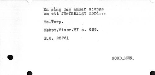 //// . - //// a //// En sång jag ämnar sjunga //// om ett förfätligt mord... //// Me.Torp. //// . //// Mskpt.Visor.VI s. 699. //// - //// E.U. 25761 //// # NORD.HUS. ////