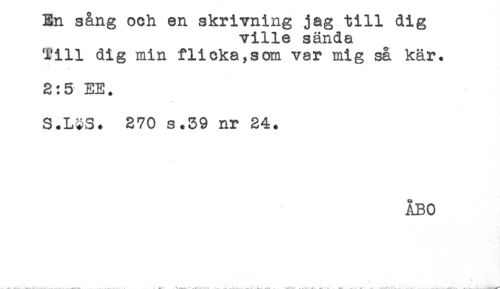 //// En sang och en skrivning jag till dig //// ville sända //// Till dig min flicka,som var mig så kär. //// 2:5 EE. //// S+L$S. 270 s.39 nr 24. //// ÅBO //// <* i //// .. . ' .- '.. . . . - - - .< .< ' < * . -a A . -i*^* ////