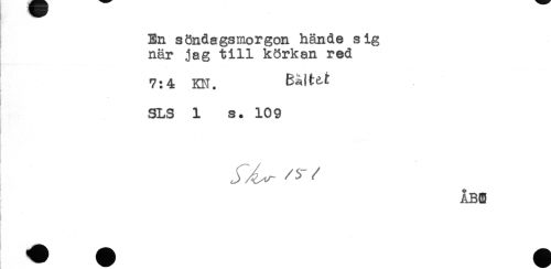 //// En söndagsmorgon hände sig //// när jag till körkan red //// 7:4 KN. Båtte-f //// SLS 1 s. 109 //// r //// ABC //// ; //// Hy ////