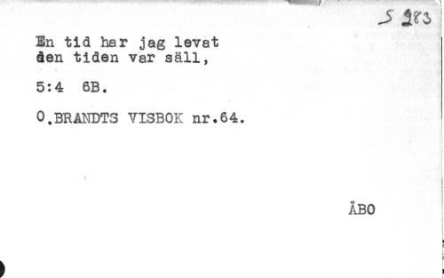 //// ) //// En tid har jag levat //// åen tiden var säll, //// 5:4 6B. //// 0.BRANDT3 VISBOK nr.64. //// * ! //// i //// L //// < //// : //// ' //// * //// ÅBO ! ////