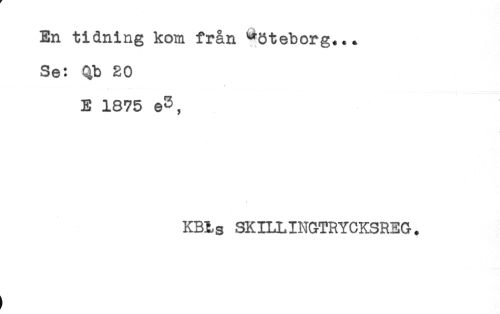 //// En tidning kom från ^öteborg... //// Se: Qb 20 //// E 1875 e3, //// { //// KB^s SKILLINGTRYCKSREG. //// ) ////