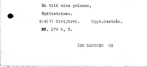 //// En tiiä mina polonen, //// t //// Epätietoinen. //// 3:4(?) Kivijärvi. Uppt.Castren. //// Rp, 176 b, 3. //// t //// ÅBO R ANC KEN MS ////