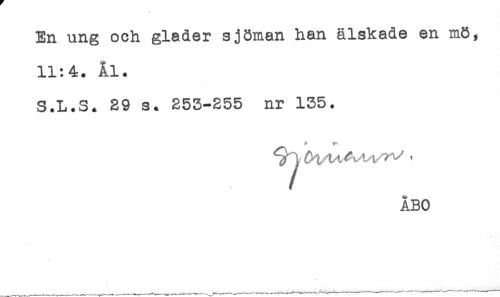 //// En ung och gläder sjöman han älskade en mö, //// 11:4. Ål. //// S.L.S. 29 s. 255-255 nr 155. //// ÅBO ////