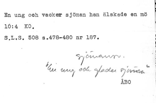 //// < //// H //// En ung och vacker sjöman han älskade en mö //// 10:4 KO. //// S.L.S. 508 s.478-480 nr 187. ! //// ! //// E //// * //// - ////