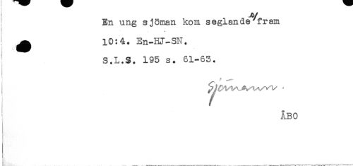 //// A //// /En ung sjöman kom seglande'fram //// i * //// ' ^ 10:4. En-HJ-SN. //// Hy //// S.L.S. 195 s. 61-63. //// ÅBO //// _____-- _ _____,_____-<-. . -. . . ..T-r. . ___-..v-. -----, -----.-- --- ////