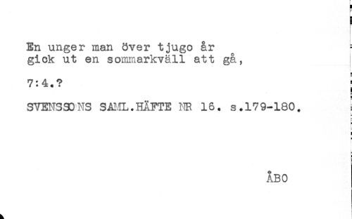 //// B //// En unger man över tjugo år F //// gick ut en sommarkväll att gå, ! //// t //// 7:4.? i //// SVENSSONS SAML. HÄFTE NR 16. s. 179-180. //// i //// E //// b //// i- //// ! //// ! //// ^ //// i ////