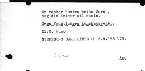 //// B ' ** //// En vacker hustru hette Tora , //// tog åin dotter uti skola. //// I Un^a_fruntjjmneM Imnska^sr^ejgel. //// t - //// 21:2. Bus8 //// t' //// SVENSSONS SAlJlL.HÄFTE NR 5.s. 173-175. //// if //// !*; //// h //// t ////