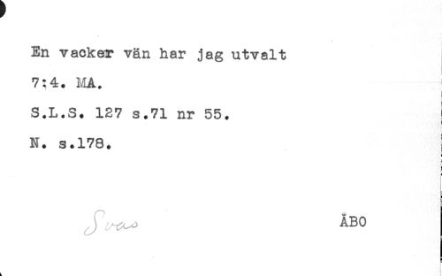 //// En vacker vän har jag utvalt //// 7:4. MA. //// < //// S.L.S. 127 s.71 nr 55. //// ! //// i //// N. s.178. //// t. //// r //// < //// f //// ! //// c //// jl^o ÅBO ////