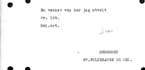 //// En vacker vän har jag utvalt //// gr. //// i^r. 109. //// Mel.not. //// BERGGREN //// SV. FOLKES ANGE OG I.IEL. ////