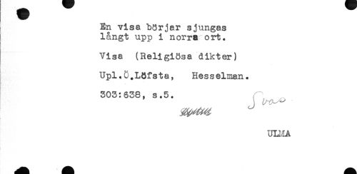 //// En visa börjar sjungas //// långt upp i norra ort. //// Visa (Religiösa dikter) //// * //// Upl,u.Löfs t a, Hes s elman. //// 4 //// 303:638, s.5. //// (t //// ULHA //// t ////