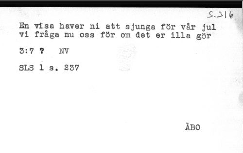 //// En visa haver ni att sjunga för vår jul //// vi fråga nu oss för om det er illa gör //// 5:7 ? NY //// SLS 1 s. 257 //// ÅBO ////
