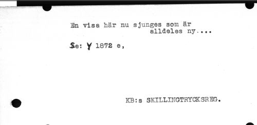 //// En visa här nu sjungas som är //// alldeles ny.... //// < //// ge: y 1872 e, //// ^ KB:s SKILLINGTRYCKSREG. ////