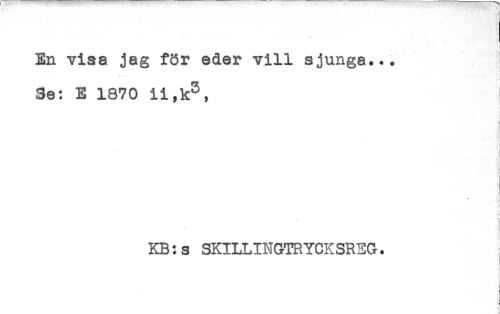 //// - - - \ //// En visa jag för eder vill sjunga... //// .... , //// Se: E 1870 //// i //// i //// ! //// i //// s //// ! //// KB:s SKILLINGTRYCKSREG. //// f ////