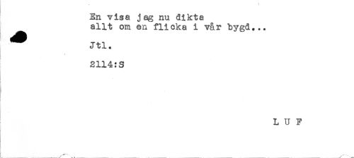 //// En visa jag nu dikta //// allt om en flicka i vår bygd... //// ^ Jtl. //// 2114:s //// ik* //// i //// i //// < //// - //// L U F ////