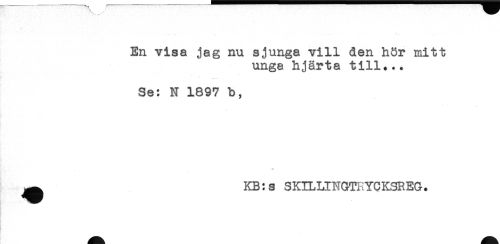 //// En visa jag nu sjunga vill den hör mitt //// unga hjärta till... //// Se: N 1897 b, //// ^ KB:s SKILLINGTRYCKSREG. //// C* ////
