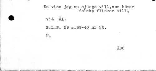 //// En visa jag nu sjunga vill,som hörer //// i falska flickor till, //// # 7:4 Ål. //// S.L.S. 29 s.39-40 nr 22. //// N. //// ; ÅBO //// r-. ---,----. -----^ ----- -----' ^ ----- ----^ ' --- ////