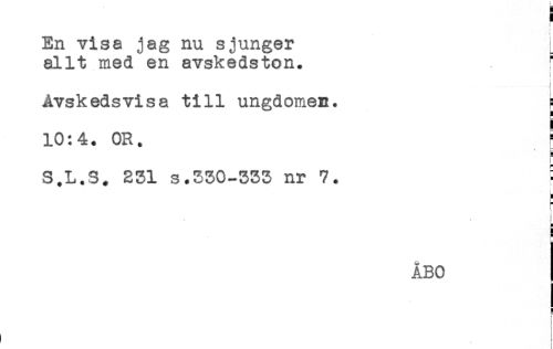 //// a //// i //// r //// En visa jag nu sjunger //// allt med en avskedston. //// t //// $ //// t //// i //// Åvskedsvisa till ungdomen. ? //// ! //// 10:4. OR. f //// * r //// ! //// S.L.S. 231 s.330-333 nr 7. ! //// t //// i //// i //// ! //// a //// ! //// ÅBO //// t ////