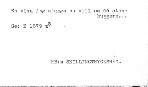 //// En visa jag sjunga nu vill om de sten- //// huggare. .. //// Se: E 1879 z^ //// i //// i //// < //// * //// t //// j //// KB:s'SKILLIFGTRYCKSREG. //// t. ////