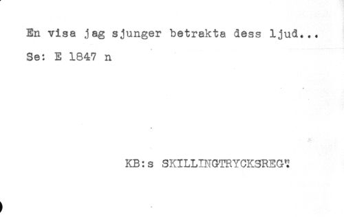 //// En visa jag sjunger betrakta dess ljud... //// Se: E 1847 n //// * + //// * //// c' //// KB: s SKILLINGTRYCKSREGT //// t ////