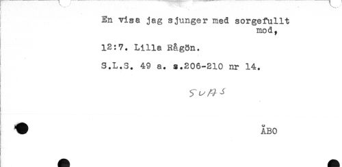 //// En visa jag sjunger med sorgefullt //// mod, //// 12:7. Lilla Ragön. //// S.L.S. 49 a. s.206-210 nr 14. //// j ////