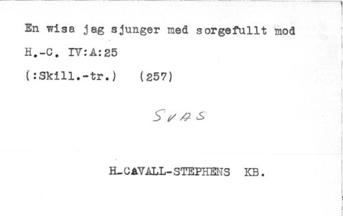 //// En wisa jag sjunger med sorgefullt mod //// w //// H.-C. IV:A:25 //// (:Skill.-tr.) (257) //// t //// 3 ^ //// } //// i //// i //// < //// i //// H-0 AVÅLL-STEPHENS KB. //// < //// L //// ! ////