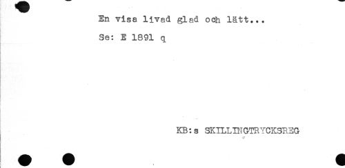 //// En visa livad glad och lätt... //// Se: E 1891 q //// - //// . //// . //// - //// ' //// i //// r //// KB:s SKILLINGTRYCKSREG //// <P ////