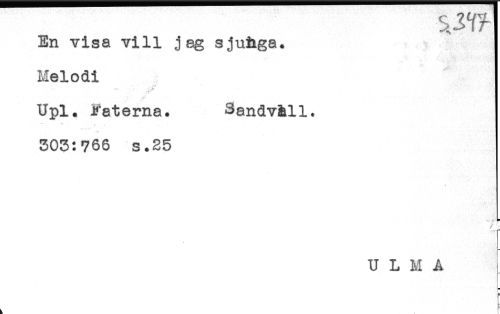 //// En visa vill jag sjuhga. //// Melodi //// * t //// .A' //// Upl. Fa t erna. SandvUl. //// * t : //// 303:766 s.25 //// U L M A ^ ////